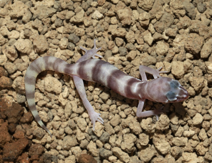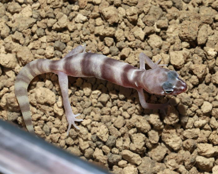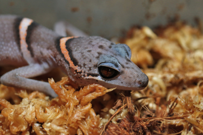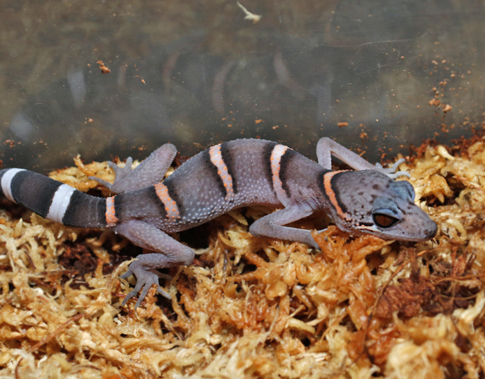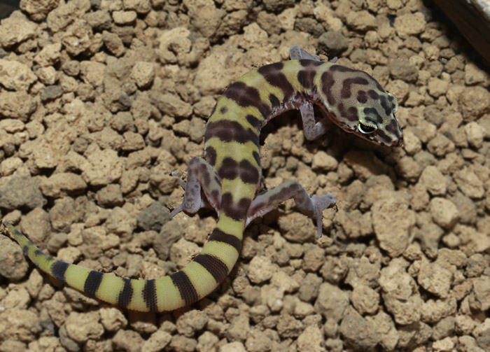 近似種のチワワトカゲモドキと違い、バンド模様は成熟しても明瞭…というか、よりくっきりとした縞になることが多いです。