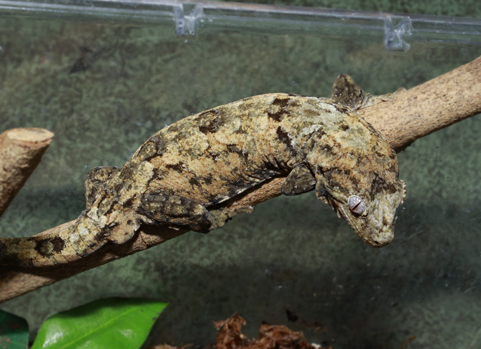 旧ラコダクの中でも、ギョロ目と大きな頭の妖しい魅力は本種ならではのマモノミカドヤモリ。樹皮状の模様と相まって愛らしさと妖しさを兼ね備えています。