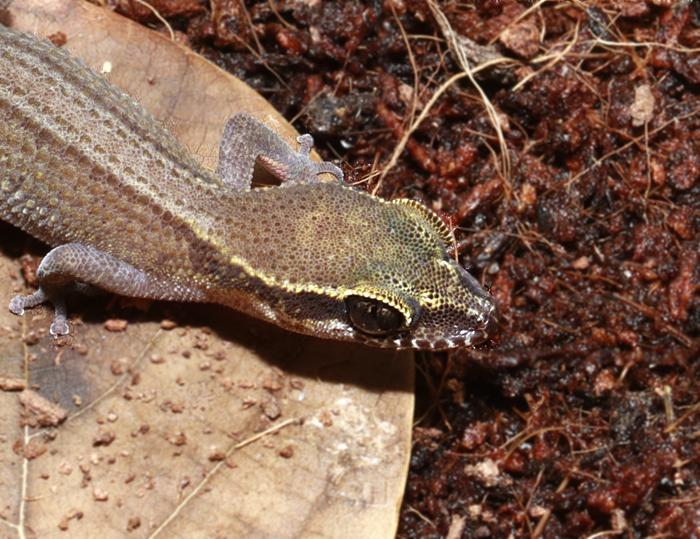 2019年に記載された中型のコバンヤモリ属です。タイ中北部のピッサヌローク県の石灰岩地帯に分布し、サンドストーンゲッコー