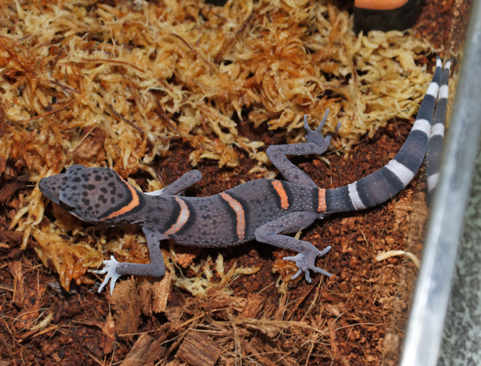 かなりの局所分布種ですが、その飼育しやすさと、他種にない特殊な体型(手足は短いが体躯はやや細長く、頭幅も狭い)や、幼体時の赤みがかったバンド柄が成熟するにつれて黒いヒョウ柄へ変化していく様子などから、属中でも人気種に躍り出てきました。