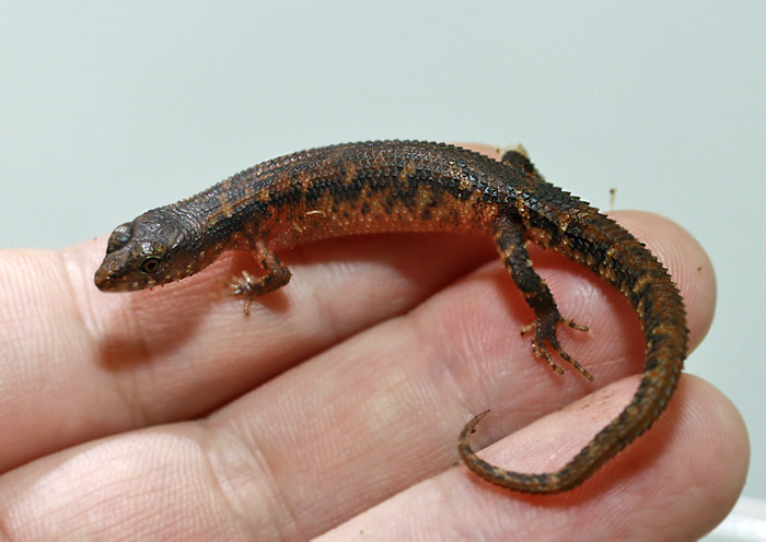 | サンマルティンコブトカゲ | Xenosaurus sanmartinensis | 珍!ラッカムコブトカゲと近縁な、古代生物風の格好良い原始蜥蜴。 コブトカゲの仲間はコブトカゲ科という独立したカテゴリーで、数種のみがメキシコに分布している姿だけでなく実際に原始的なグループです。 重なり合った鱗を持たない古生物的でゴツゴツした風貌は、かなり格好良いですね。オレンジ色の虹彩が、悪そうな顔! 性別まだはっきりしない、ピカッとしたMSサイズ 画像 画像 |