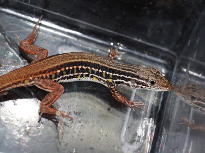 Lepidophyma flavimaculatum | こちらは上記とは別な、同じくニカラグア産WCからの国内CB 地表性ヤモリのように飼える不思議な夜行性トカゲ。ゴツゴツした古代的な風貌と、それに相反したつぶらで可愛らしい瞳、意外と鮮やかな黄色いスポット、三角形の独特の頭部等ヨルトカゲの仲間ならではの特徴を顕著に持っています。 名の通り夜行性で紫外線を必要としないため、トウヨウトカゲモドキなどの湿潤系トカゲモドキの感覚で飼育出来ます。 単為生殖種でメスしか存在せず、単体で殖えることが知られています。この個体達も単独飼育のメス親から産まれています。分布域が広い種なので、産地やタイプ別に集めてみるのも面白そうです。 少し育ったしっかりサイズの幼体達。 誕生月違い、複数在庫有り 画像 画像 |