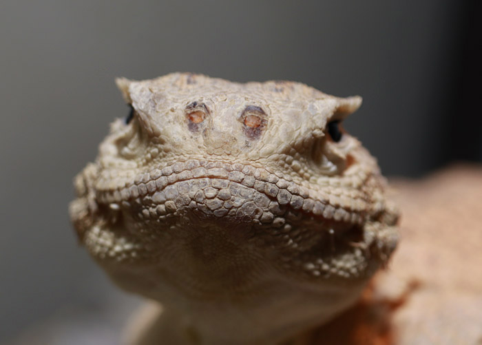 Varanus acanthurus | 国内CB!上記幼体と同じブリーダーさんからですが、親個体は異なります。 「レッドアキー」「イエローアキー」に代表されるように色彩や体型にタイプがある種で、ブリーダーによっては血統選別していたりもします。 この個体は背の眼状斑がやたらとビビッドで大きく、.びっしりと覆っています。オスというせいもありますが、尾の両縁の細かなトゲが一層目立ち、非常に格好良い個体です。 親個体は特にレッドやイエローの冠付きで輸入されたものではありませんが、それら以外にも細かく分けると様々なタイプがあるので、こうした個体を選別しより特長を際立たせ、オリジナルの血統を作るのも一興ですね。 ヤングアダルトのオス 画像 画像 |