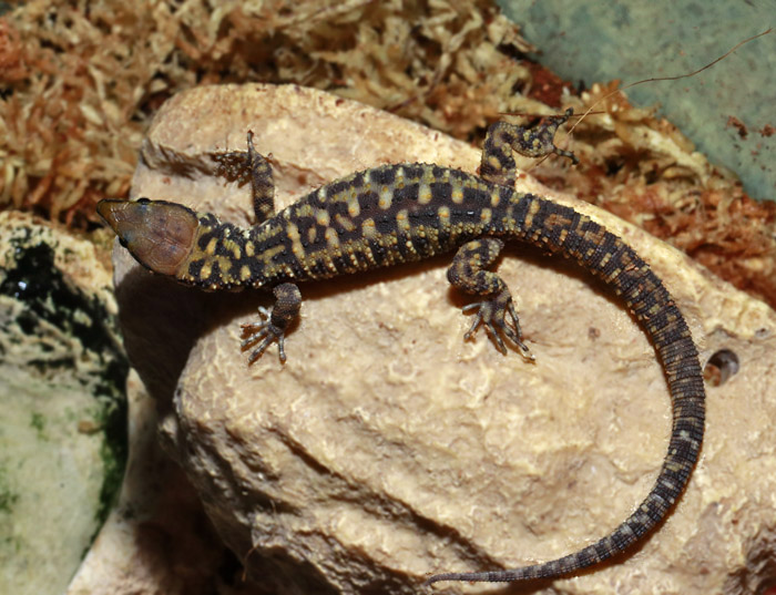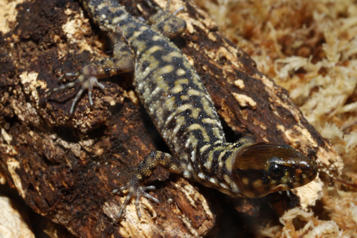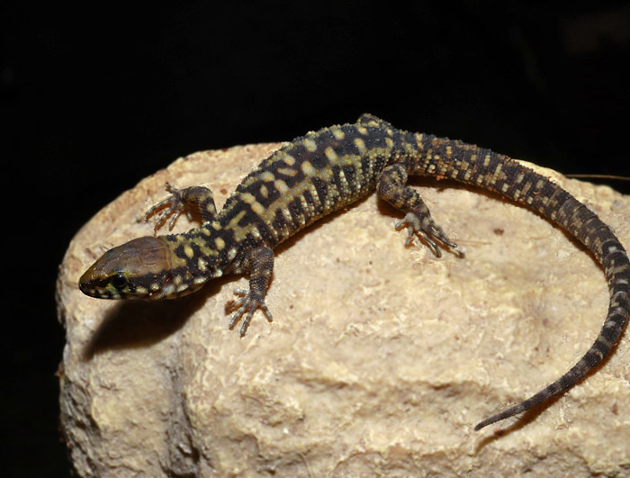 Lepidophyma smithii | 国内CB イボヨルトカゲと同じヨルトカゲ属で、粒状の鱗はあまり目立たずさらりとした質感。顔つきは吻端が丸みを帯びていて、より愛らしい感じです。イボヨルには見られる頭頂眼が本種では無いのも特長です。 実はイボヨルをも凌ぐ大型種で、以前海外のブリーダー秘蔵の種親を見せて頂いたときは度肝を抜かれました。しかもメチャ長寿です(件の個体は成体から飼育して20年以上殖え続けているとか!)。 SMサイズ 画像 画像 |