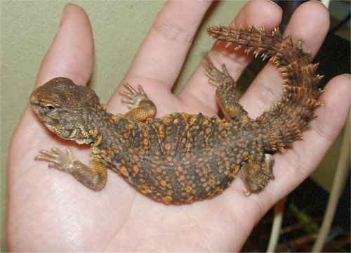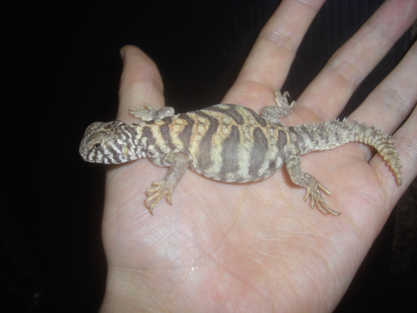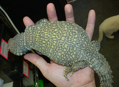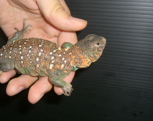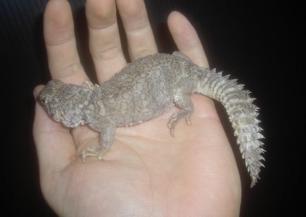 | ハードウィッキートゲオアガマCB | Uromastyx hardwickii | 現地CB。大変可愛いベビーです。 尾がトゲトゲせず、すらっとした特徴あるトゲオアガマ。かおつきも、全体的にオッサンぽい(笑)この仲間の中では、かなり可愛げがあります。 |
