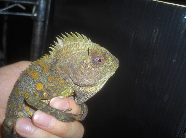 | ジュウジカクシトカゲ | Acanthosaura crucigera | 東南アジアのツリーアガマ。状態の良いヤングサイズが入荷しました。バタバタせず、一カ所に落ち着いていることの多い扱いやすい種です。 マスクをかぶったような顔つきが印象的。 |