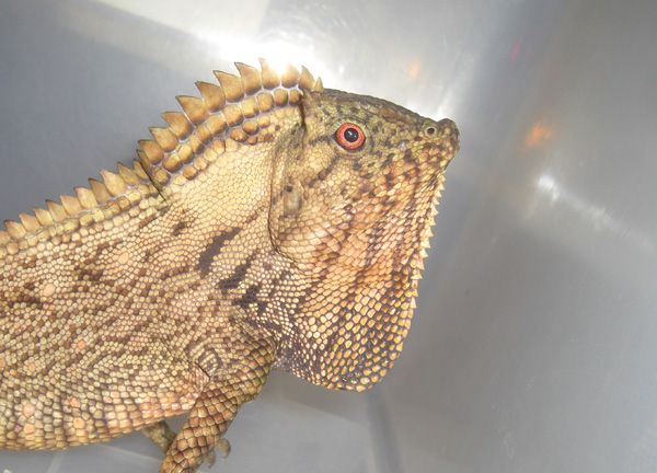 | ベトナムクシトカゲ | Acanthosaura capra | クシトカゲの中でもかなりの渋みを持つ種。4種のクシトカゲの中でも最マイナー種。でも最近では流通量が一番多い種かも。 タテガミ状のクレストと顎髭のように伸びたデュラップの格好良さは他種に負けません。おそらく最も頑健なクシトカゲで、水切れにも強いです。メス。オスは成熟しきるとクレストが伸び、水色がかった顔に赤いクレストの美種に変身します。 |