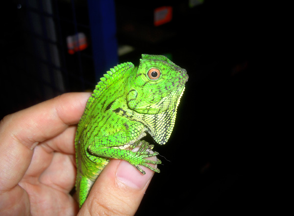 | ベニクシトカゲ(グリーン) | Acanthosaura lepidogaster | レア!入手最難種のクシトカゲ。 ビビッドなイエローグリーンに黒のマスクが精悍な感じ。興奮すると口元から喉までを真っ赤に染めます。分布域はそう狭くないのですが、何故か滅多に輸入されません。ペア取り可 |