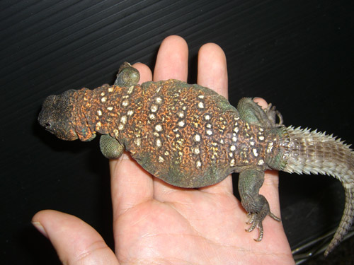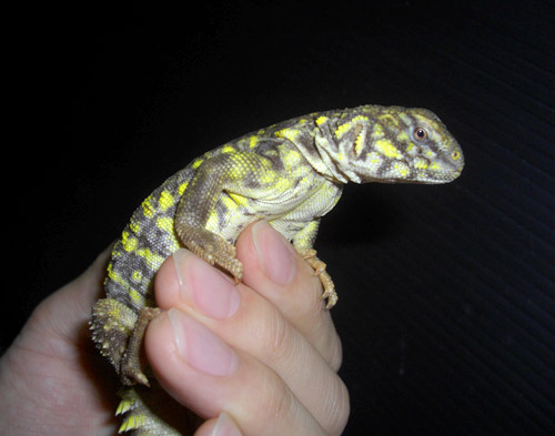 | ニシキトゲオアガマBaby | Uromastyx ornata ornata | ファーミングベビーのやや育ったしっかりサイズ。 今回のは、最近主流に成りつつある、大型で色味の濃い個体群のベビー。さすが、このサイズから色合いもバッチリで、将来の発色が十分予想できます。 頭部 背 腹 |