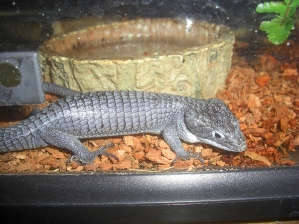 | シャスタアリゲーターリザード | Elgaria coerulea shastensis | レア!飼い込み個体です。 本種はノーザンアリゲーターリザードの亜種の一つで、基亜種に比べてやや弱いキールを持ちます。背や頭部には細かい黒スポット。 全体的にがっしりした体格で、胴太で尾は短め。他種同様、吻端は平たく細長く突出しています。怒って口を開けると結構バックリ開き、確かにワニっぽい。 この仲間は意外にも樹上棲が強く、よく立体物に登って動き回ってます。 |