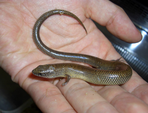 | ホンコンフタアシトカゲ | Dibamus bogadeki | 激珍!2属のみで構成されるフタアシトカゲ科Dibamidae(またはメクラトカゲ科)のトカゲ。科単位で初入荷となることは、爬虫類全体としても滅多に無いことです。しかも今回一挙に2種が入荷。 本種は9種ほどで構成される同科の主力、フタアシトカゲ属の一員。とてもトカゲとは思えない体型で、四肢は消失。スキンク科にはたまにこんな姿のもいますが、本属はそれらよりずっと細長く、一見すると太くて大きめのメクラヘビのよう。 目は痕跡的で、耳孔すら有りません。頭部の鱗の重なり方など、まさにメクラヘビ的。でも歴としたトカゲなのです。 東南アジアの森林に棲息し、見た目の通り地中性。湿った床材を敷いておくと、トンネルを造ってウロウロしています。面白い!地中生活に適応しているせいか鱗は薄め。あまり長く乾燥した場所でいじっていると、鱗が乾いてきてしまうのでご注意。 生態も殆ど分かっていない種ですので、我こそはというキワモノ好きか、研究者の方にのみお勧め。 |