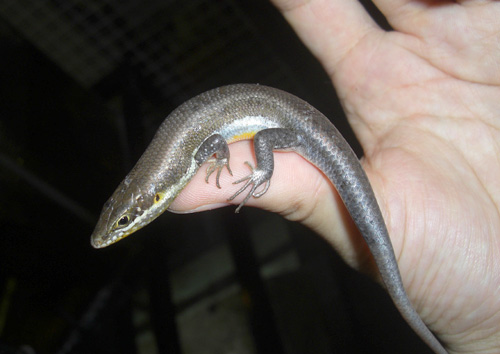 | シジミマブヤ | Eutropis macularia | 小型の地上棲スキンク。オスはメスより派手な体色。発情すると顎が青や赤になります。メスは地味な感じ。 |