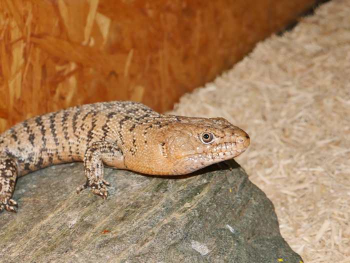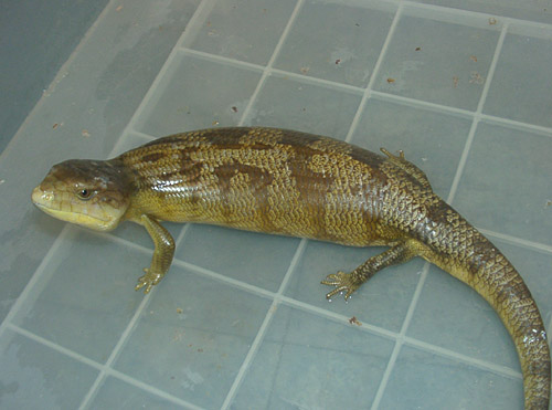 | ケイアオジタトカゲ | Tiliqua gigas keiensis | インドネシア系のアオジタの中では最レア亜種で、アダルトでは苔むした斑模様になります。この個体は、特徴的な乱れた苔色の斑紋がかなり顕著になってきています。 生息地がケイ(カイ)諸島とアルー諸島という限られた場所なので、一度流通が止まるとなかなか再会できません。 頭部 背部 画像 |