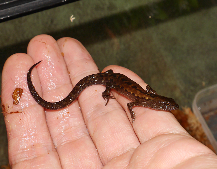 | チャイニーズクロコダイルスキンク | Tropidophorus sinicus | シナミズトカゲ。クロコダイルスキンクの仲間の中でもかなり小型の種で、ミニチュア的な飼育法を楽しめます。小型水槽に渓流を模したレイアウトなんかして飼うと最高に面白いです。 ほっそりした面構えですが、体表はきちんとキール立っていてワニっぽい。この辺り、ペルー産の希種ミズテユーにそっくり。収斂なんでしょうね。 |