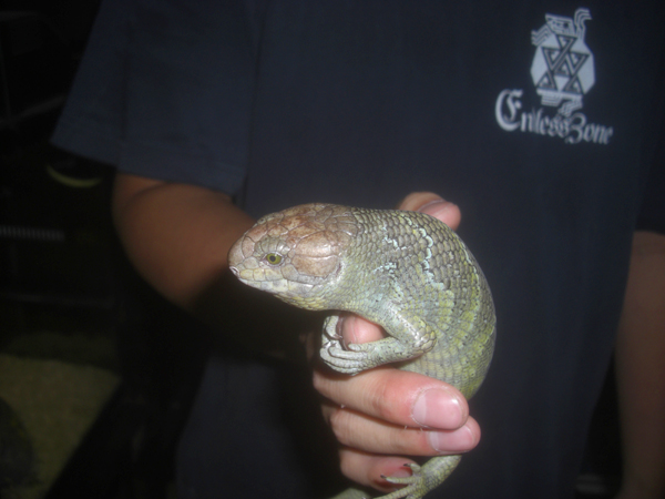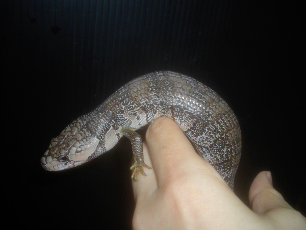 | モモジタトカゲCB | Hemisphaeriodon gerrardii | ドイツCB。 名の通り、成長するに連れて舌先は桃色になります。小さいうちは細身で、アオジタと言うより他のスキンク類のようですが、顔つきを見るとよく分かります。成長に連れ、頭部にボリュームも出てアオジタに近い感じになっていきます。 ハンドリングすると長い尾をゆったりと指に巻き付け、アオジタトカゲの近縁種でありながらその動きは全く別モノ。言われているとおり、ゆったりした動きのアリゲーターリザードといった雰囲気。木などにもよく登るので、レイアウトして飼うのも良いでしょう。 あまり物怖じせず、オープンな場所でよく日光浴をしています。スキンク系の飼育にあたってこれは嬉しい。 |