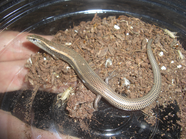 | タテスジマブヤ(フィリピン産) | Eutropis multifasciata | フィリピン産タテスジマブヤ。インドネシア便で来るのとは若干体色などが違います。特にメスは鱗一枚一枚に黒い縁取りがあって格好良い! |