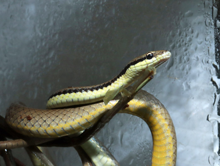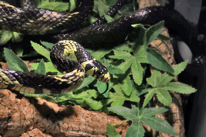 Spilotes pullatus | 国内CBの飼い込み!本種のCBって凄いことです。 南米の大型ナミヘビで、アグレッシブで立体活動をよく行います。古い和名「フミキリヘビ」のとおり、個体によって比率が異なる黒と黄色のバーが体に並びます。 興奮しやすい性質ですが、威嚇して喉を膨らました姿がまた格好良いのです! メキシコから南米にまで広く分布しますが、この個体達はガイアナ産原資個体による繁殖個体。 ミドルサイズのメス 画像 画像 画像 |