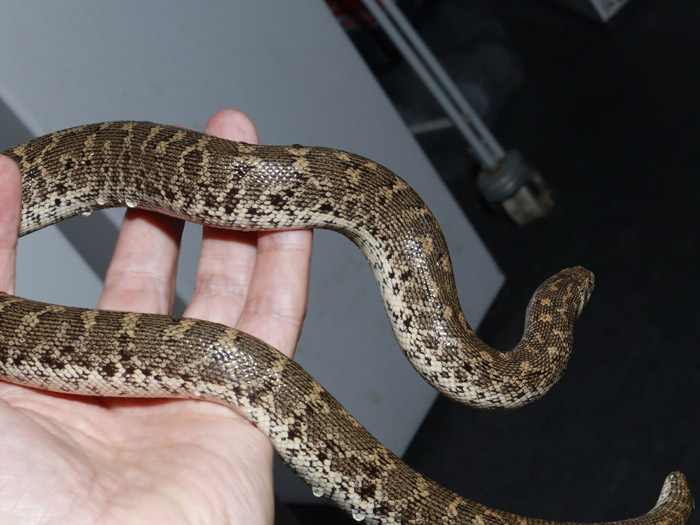 Xenopeltis unicolor | 非常に数少ないファームハッチのベビー!滅多に見られないのであまり知られていませんが、幼体は親とは違って頭部が真っ白で別種のような姿です。 油膜のような(笑)ギラギラ感が独特の美しさ。ややメカニカル感もあるものの、よく見れば可愛らしい顔つきが人気です。 インドネシア産個体群。 幼体 画像 画像 |