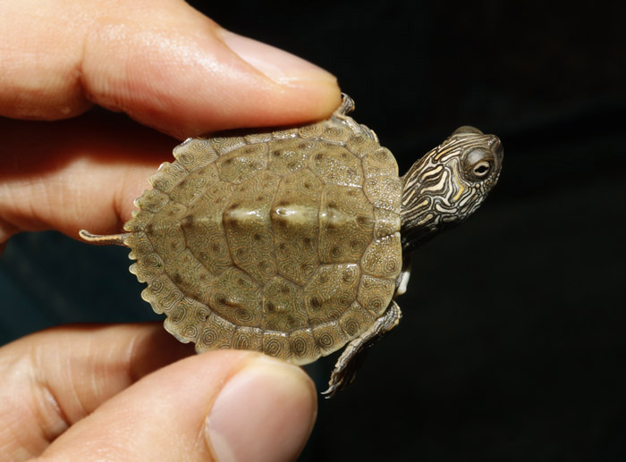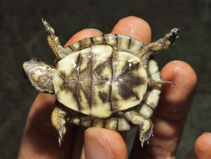 Terrapen carolina major | 国内CB アメハコの中でも地味シブといわれるガルフですが、実はイエロータイプがいたり成熟すると真っ黒になったり、逆に頭部が白抜けしたりとなかなかにカラフル。 ヤマガメっぽいと言われるガルフだけあって、ベビーのうちから違いますね。ミツユビより少し厳つい感じで、目つきも鋭い感じ。可愛さならミツユビ、格好良さを求めるならガルフをお勧めです。 幼体。性別不明 頭部 背甲 腹甲 |
