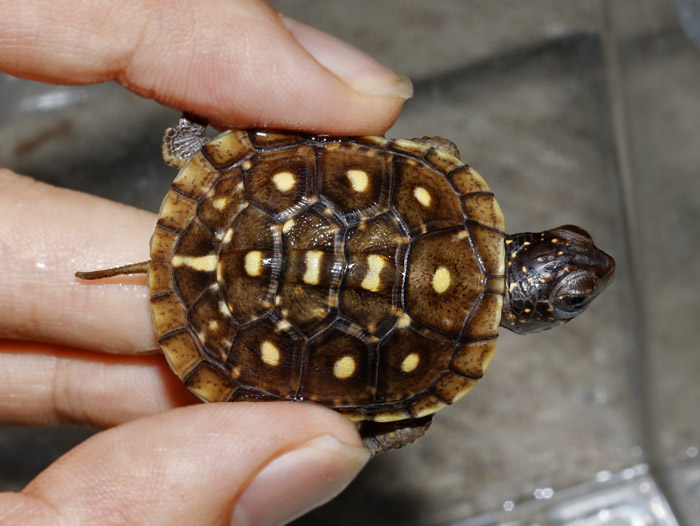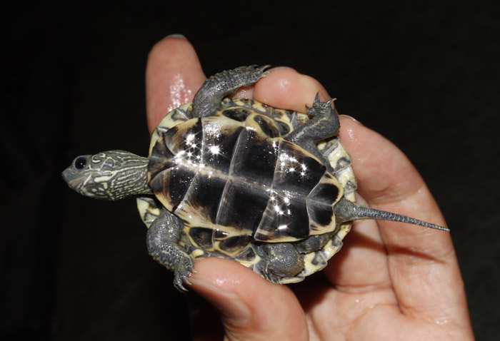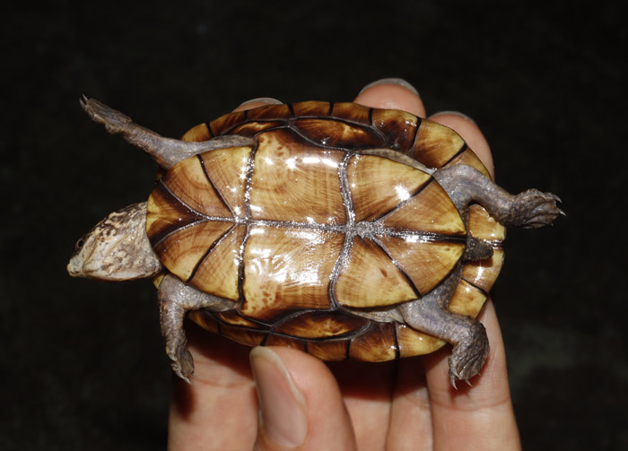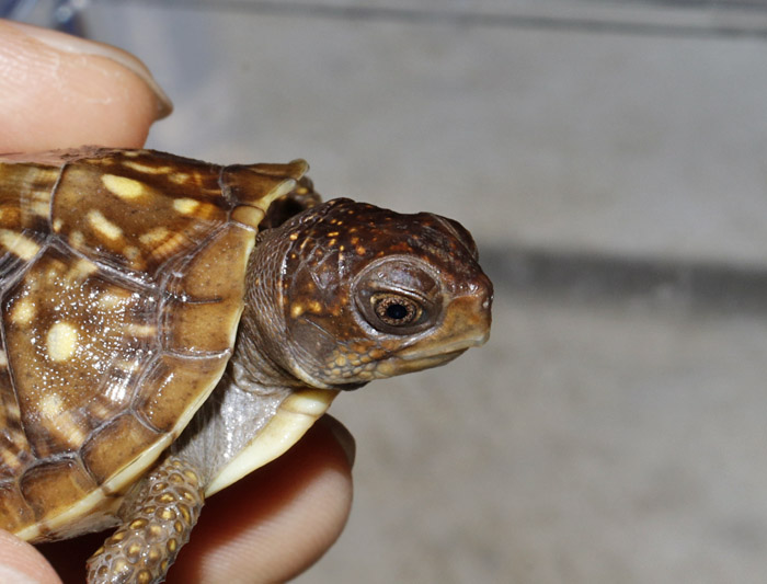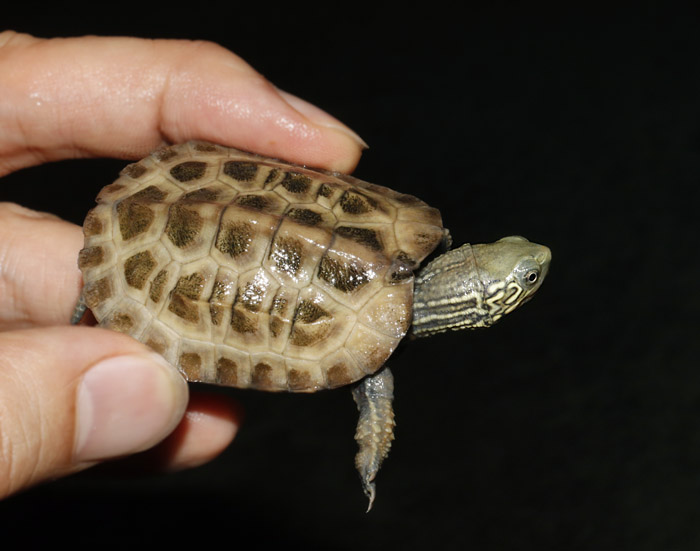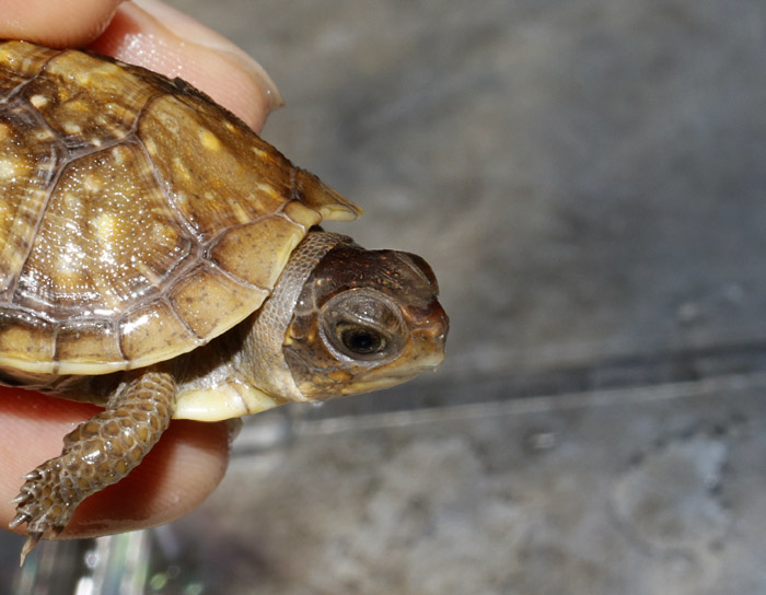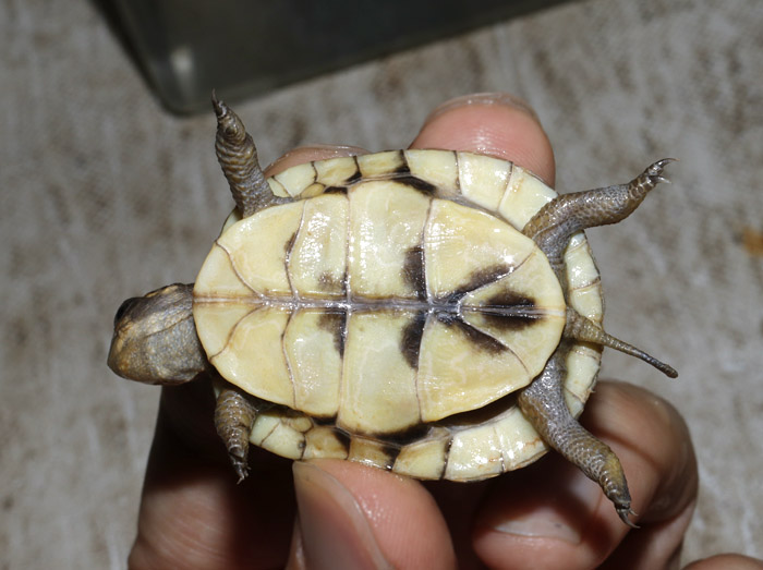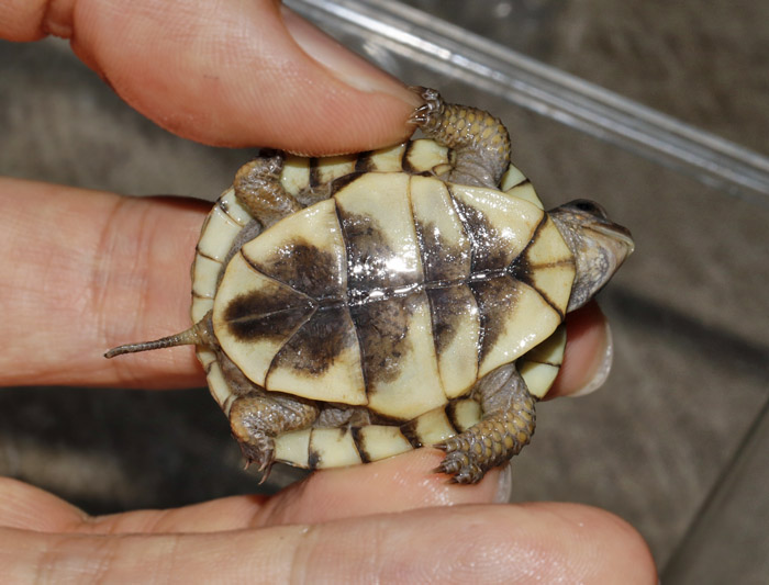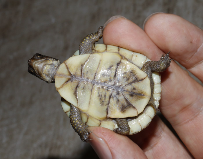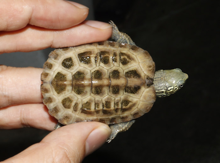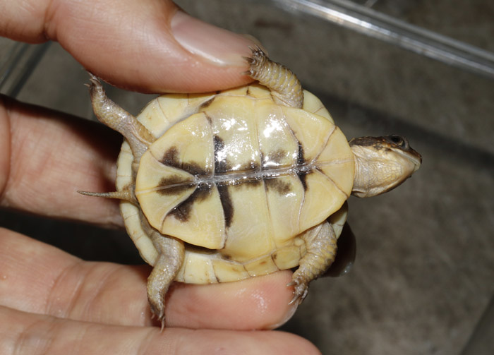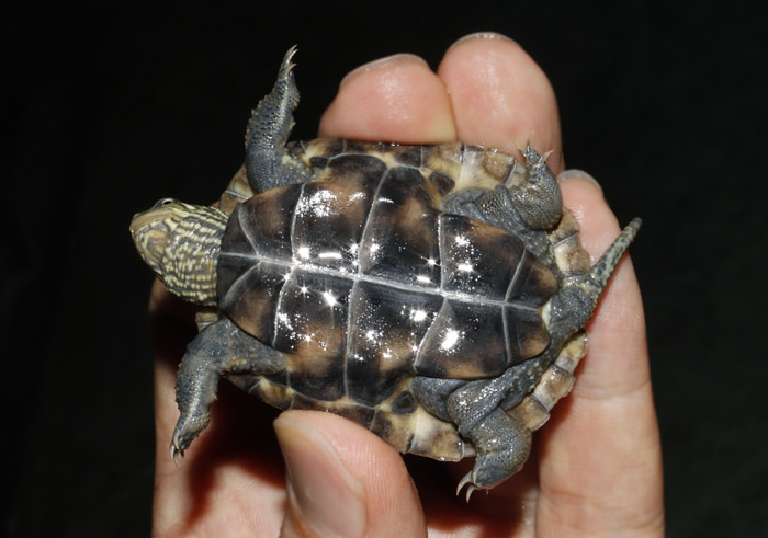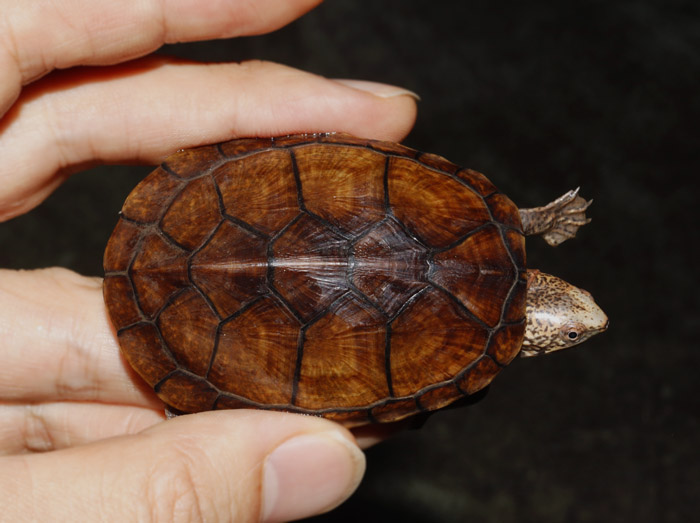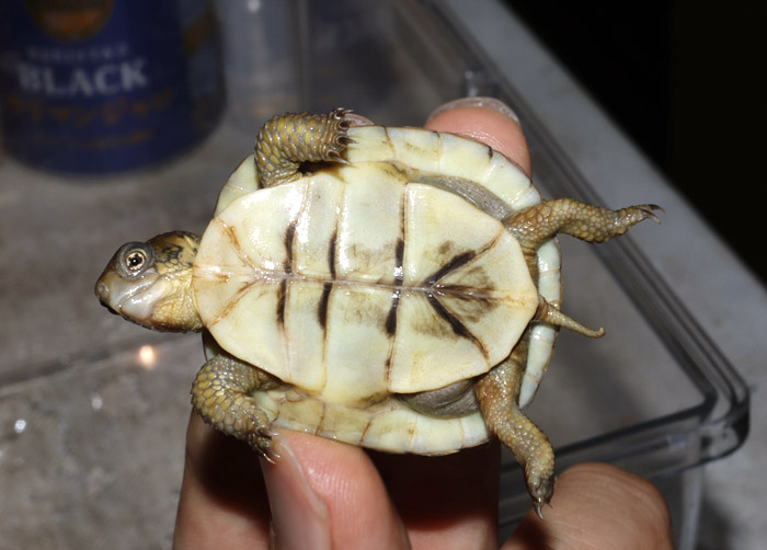 Terrapen carolina triunguis | 国内CB 血統や個体差によってアメリカハコガメの中でも相当なバリエーションがあるミツユビ。最も入手し易いながら、最も奥が深いと言っても過言ではないでしょう。 模様の傾向はまだ不明な現段階から地色の濃淡や柄の素も個体により様々で、どのような方向に育っていくか楽しみ! 幼体。性別不明 個体C 頭部 背甲 腹甲 個体D 頭部 背甲 腹甲 |