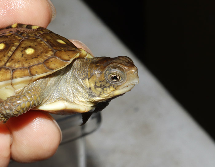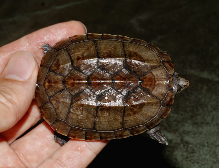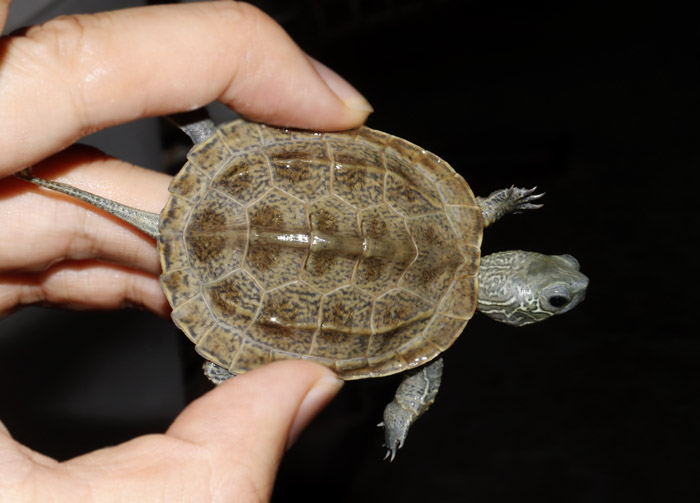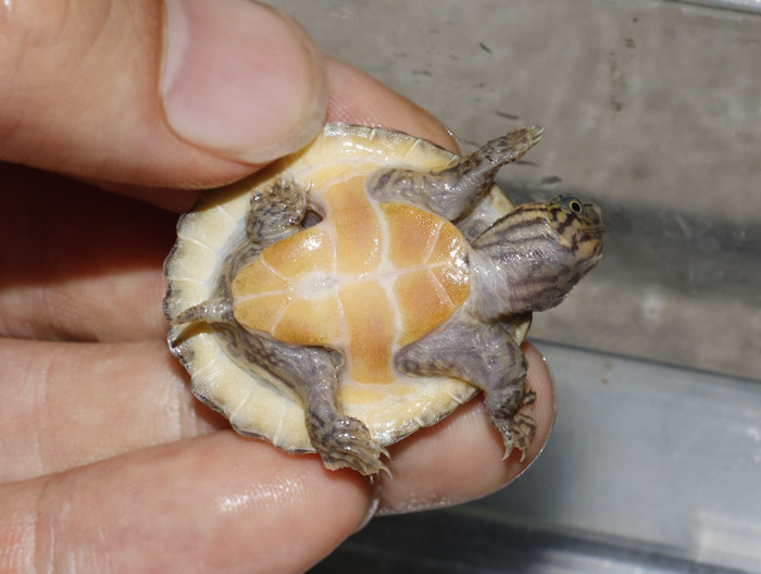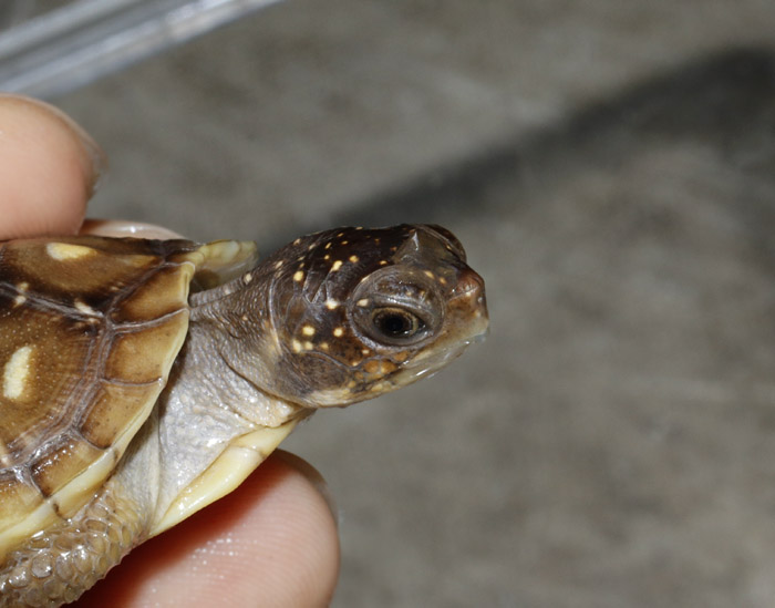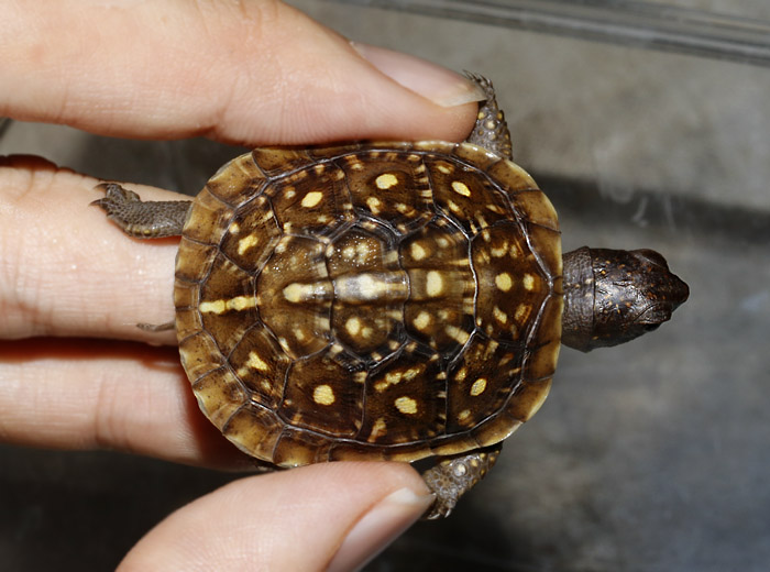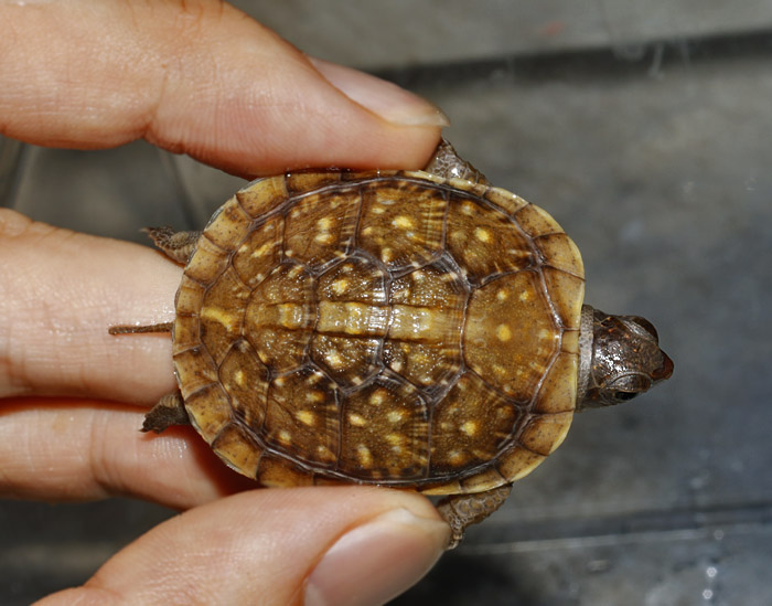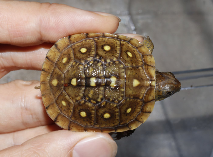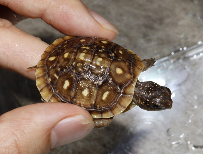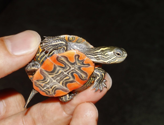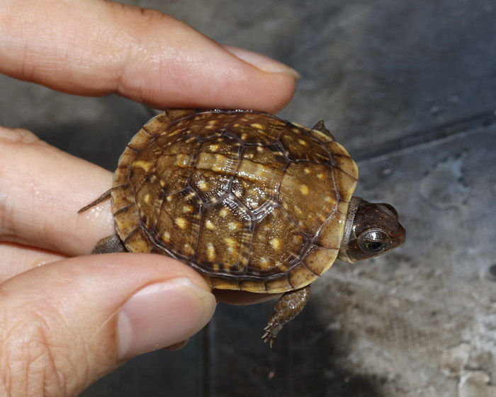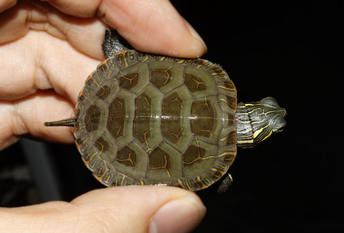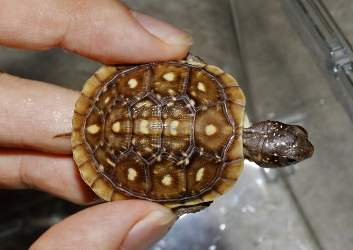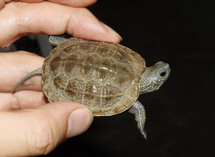 Terrapen carolina triunguis | 国内CB 血統や個体差によってアメリカハコガメの中でも相当なバリエーションがあるミツユビ。最も入手し易いながら、最も奥が深いと言っても過言ではないでしょう。 模様の傾向はまだ不明な現段階から地色の濃淡や柄の素も個体により様々で、どのような方向に育っていくか楽しみ! 幼体。性別不明 個体C 頭部 背甲 腹甲 個体D 頭部 背甲 腹甲 |