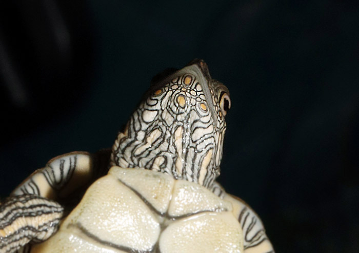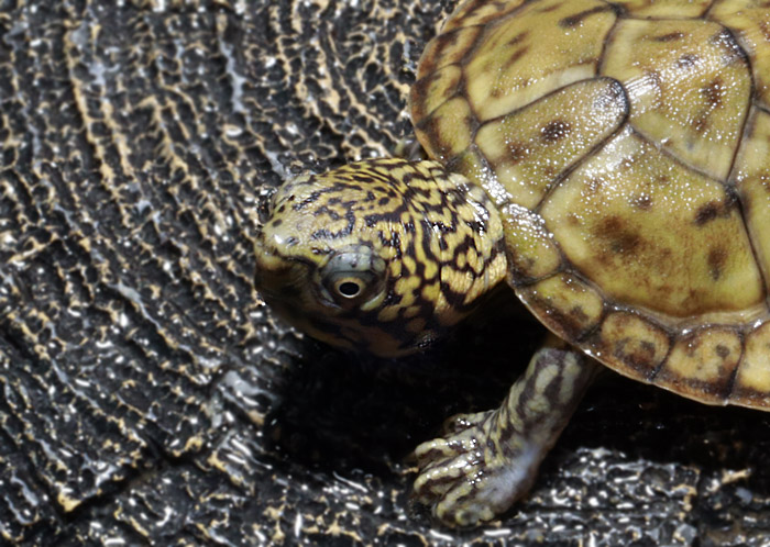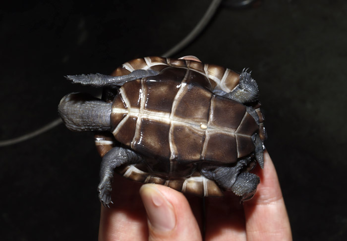 | ミツユビハコガメCB | Terrapen carolina triunguis | 国内CB 血統や個体差によってアメリカハコガメの中でも相当なバリエーションがあるミツユビ。最も入手し易いながら、最も奥が深いと言っても過言ではないでしょう。 模様の傾向はまだ不明な現段階から地色の濃淡や柄の素も個体により様々で、どのような方向に育っていくか楽しみ! 幼体。性別不明 頭部 背甲 腹甲 |