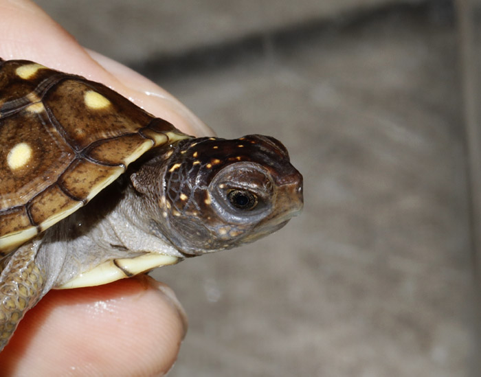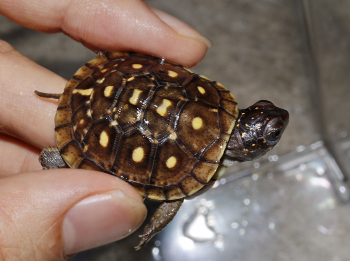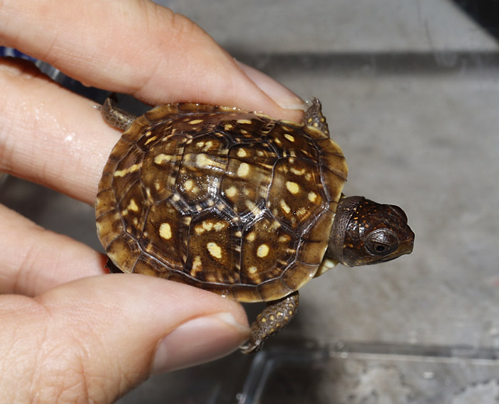 | ミツユビハコガメCB | Terrapen carolina triunguis | 国内CB 血統や個体差によってアメリカハコガメの中でも相当なバリエーションがあるミツユビ。最も入手し易いながら、最も奥が深いと言っても過言ではないでしょう。 模様の傾向はまだ不明な現段階から地色の濃淡や柄の素も個体により様々で、どのような方向に育っていくか楽しみ! 幼体。性別不明 個体B 頭部 背甲 腹甲 |