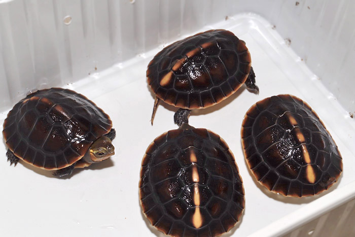 | ミツユビハコガメCB | Terrapen carolina triunguis | 国内CB 血統や個体差によってアメリカハコガメの中でも相当なバリエーションがあるミツユビ。最も入手し易いながら、最も奥が深いと言っても過言ではないでしょう。 模様の傾向はまだ不明な現段階から地色の濃淡や柄の素も個体により様々で、どのような方向に育っていくか楽しみ! 幼体。複数在庫有り。性別不明 画像 画像 |