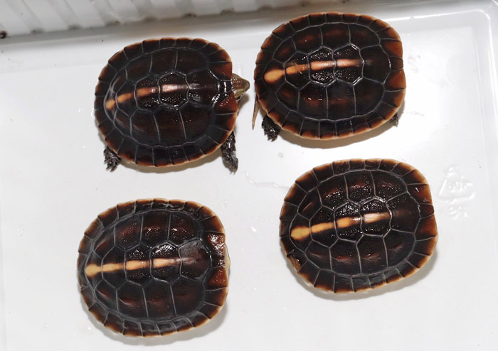 Terrapen carolina triunguis | 国内CB 血統や個体差によってアメリカハコガメの中でも相当なバリエーションがあるミツユビ。最も入手し易いながら、最も奥が深いと言っても過言ではないでしょう。 模様の傾向はまだ不明な現段階から地色の濃淡や柄の素も個体により様々で、どのような方向に育っていくか楽しみ! 幼体。性別不明 複数在庫有り 画像 画像 |